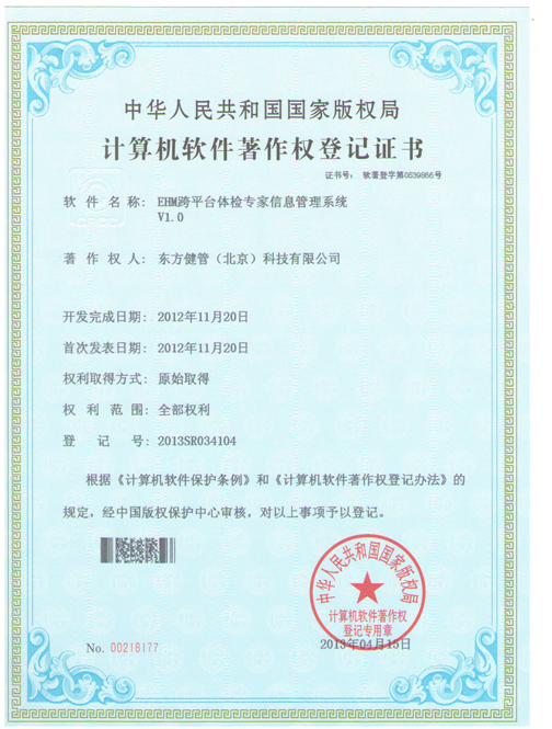 解决方案:东方健管在该领域有着巨大的优势,公司创始人白胜西先生从1999年就开始从事该领域信息化建设,先后创立和参与创立了中科恒业、北京标软、东方健管等数家专注健康管理行业的专业信息化公司,目前公司已经在该领域形成了EHM系列化产品解决方案,从体检软件到评估软件;从中医体质辨识到心理健康评估;从单体体检信息到云健康信息;另外专业的医疗软件LIS系统、PACS系统公司也已经开发完成,并完全拥有自主知识产权。公司可为健管中心提供以一体化的信息解决方案。