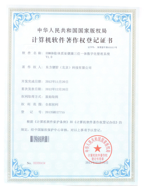 体检体质亚健康三位一体数字化系统著作权